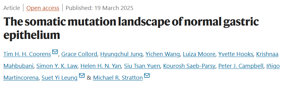 Recently, a study led by the Wellcome Sanger Institute and the University of Hong Kong, published in Nature, has systematically revealed the genetic mutation accumulation patterns preceding gastric cancer. By mapping the somatic mutation landscape of normal gastric epithelial samples from different parts of the gastrointestinal tract, the researchers found that gastric epithelial cells accumulate driver gene mutations with age and chronic inflammation, even in individuals without cancer. Notably, approximately 8% of gastric epithelial cells in individuals over 60 years old already carry cancer-related genetic alterations.
